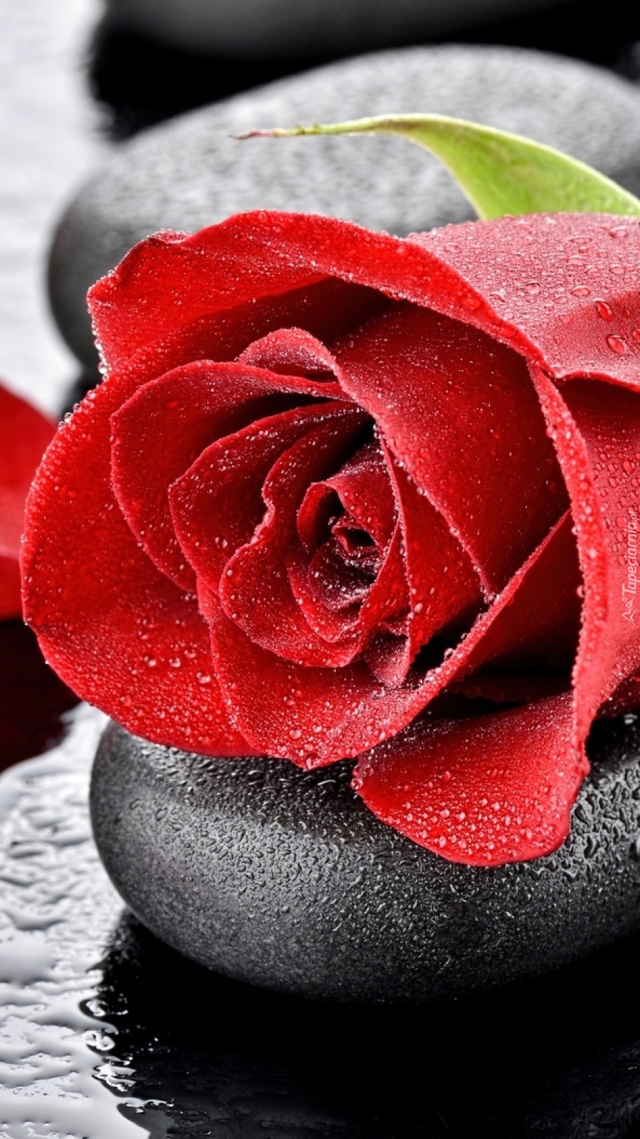 Edytor tapety: Czerwona róża w deszczu