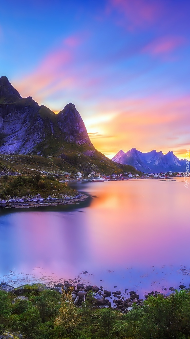 Edytor tapety: Górskie jezioro z osadą w Norwegii