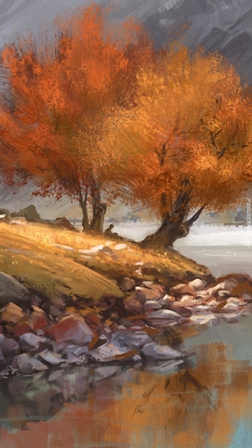 Edytor tapety: Jesienne drzewa nad rzeką