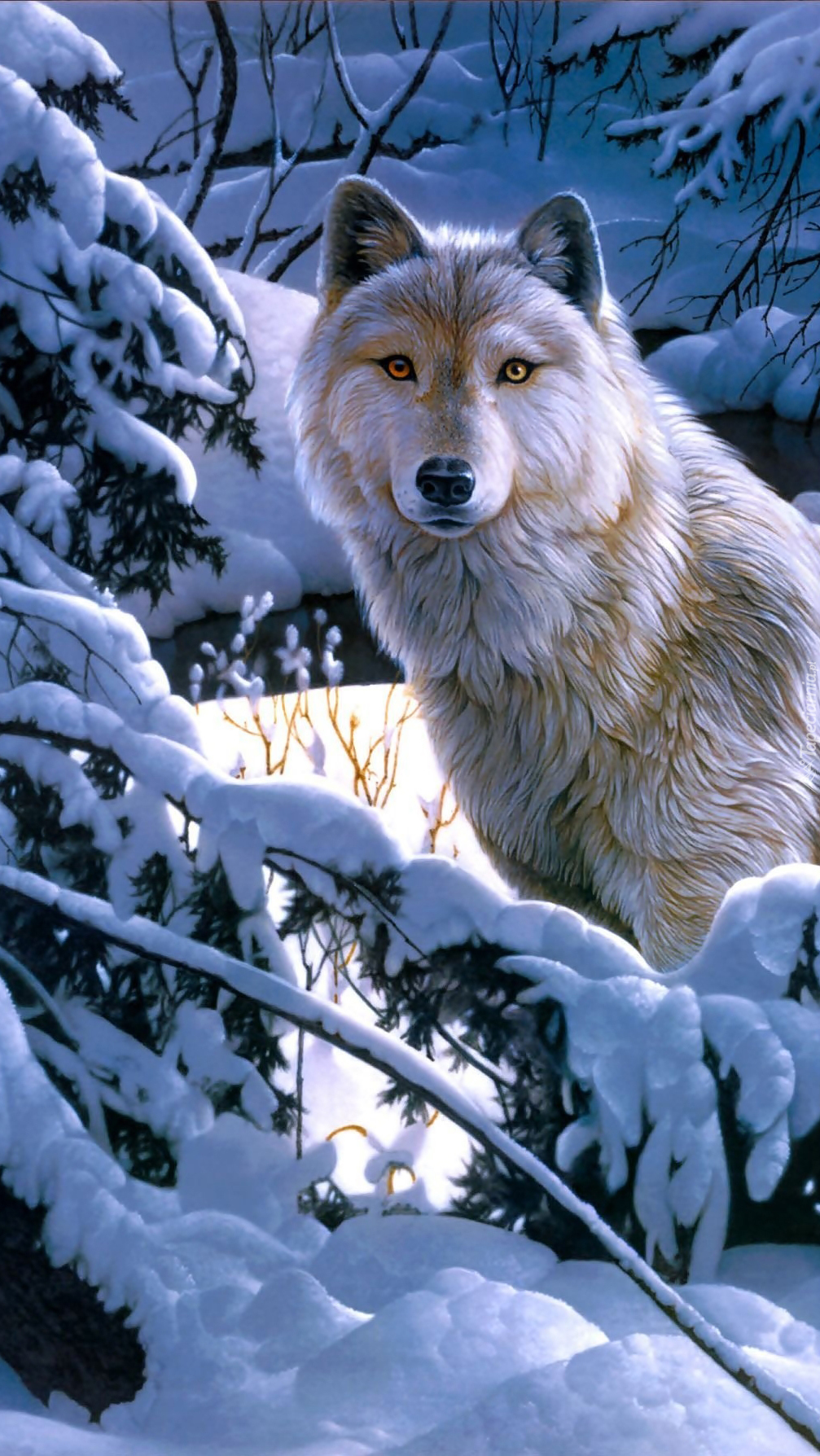 Edytor tapety: Wilk w zimowym ośnieżonym lesie