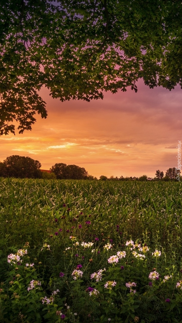 Edytor tapety: Pole kukurydzy o zachodzie słońca
