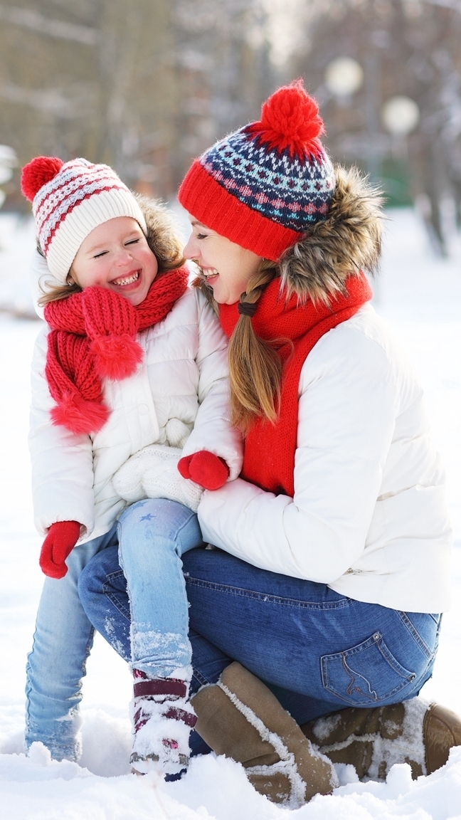 Edytor tapety: Kobieta z dzieckiem na śniegu