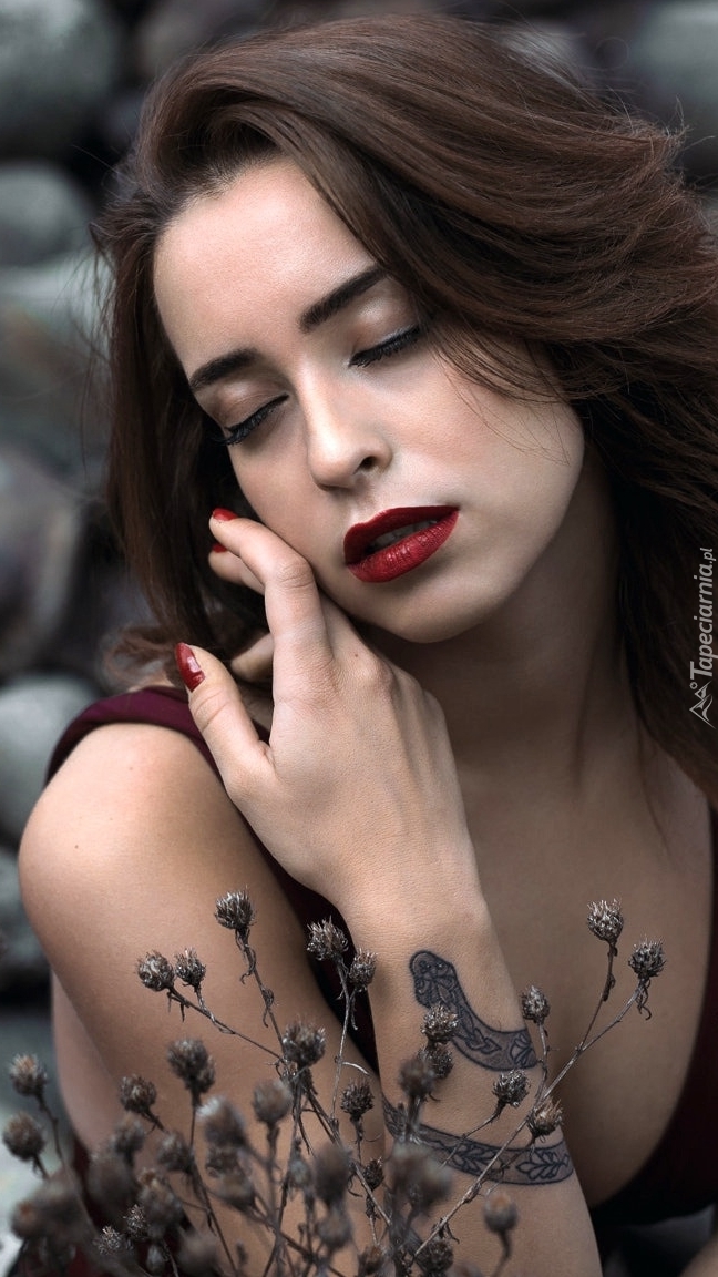 Edytor tapety: Szatynka z tatuażem na ręce