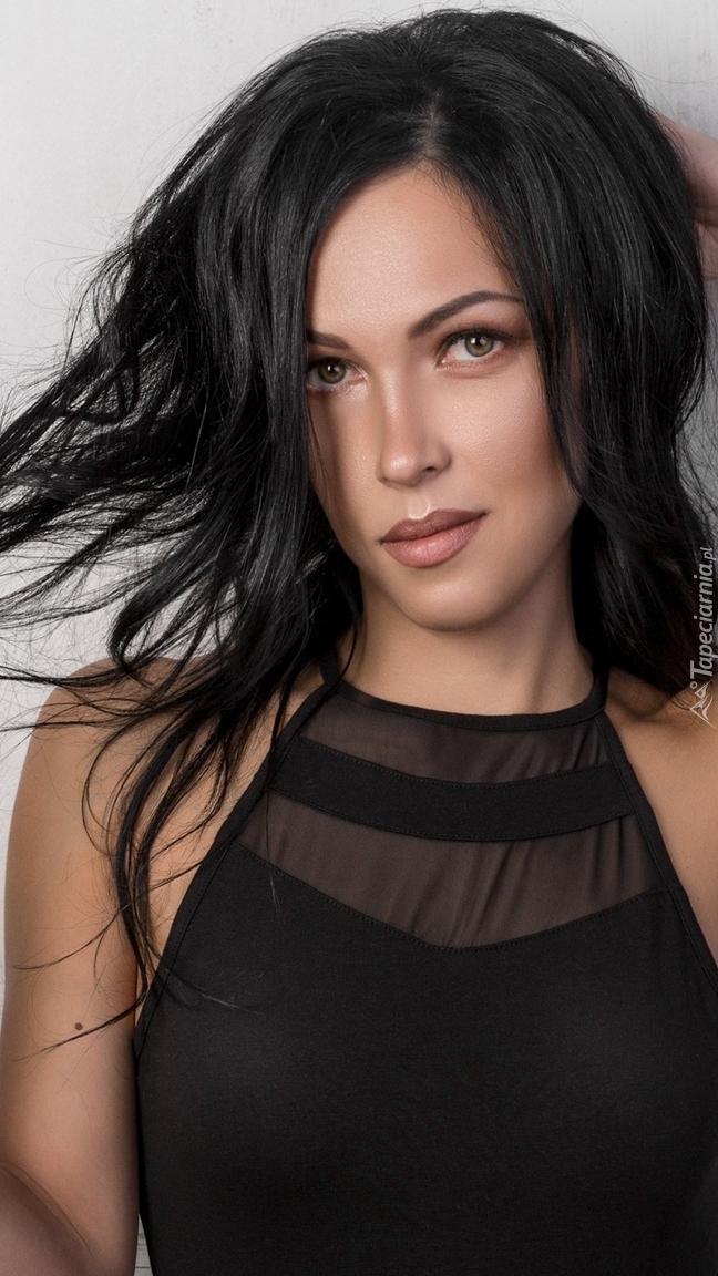Edytor tapety: Brunetka w czarnej bluzce
