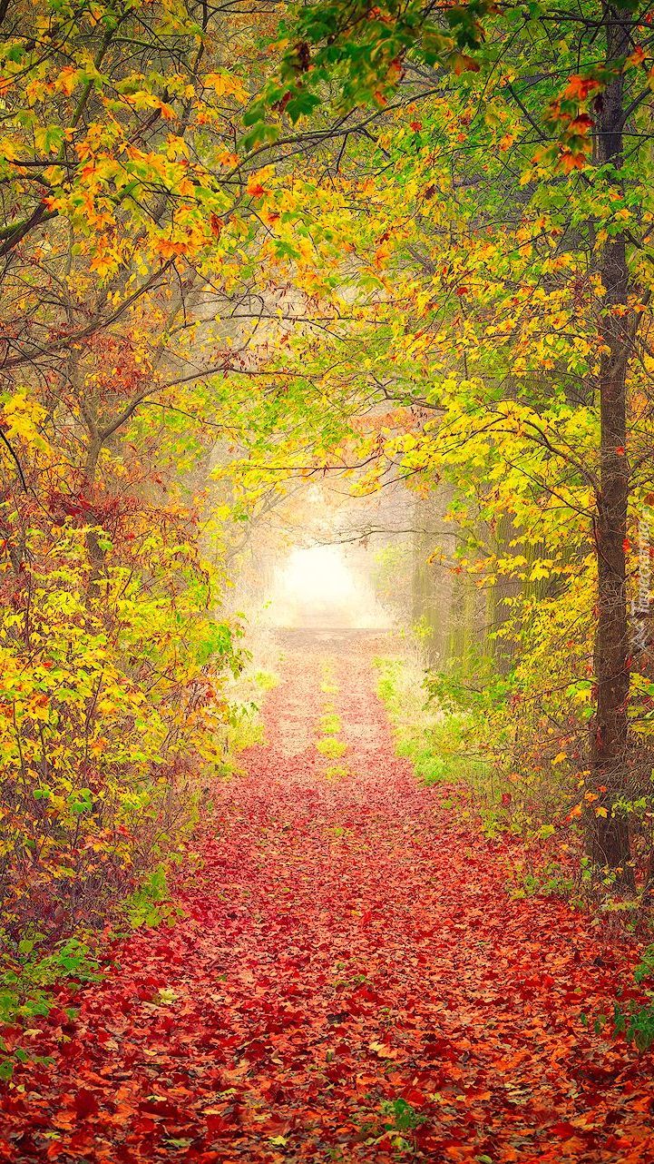 Edytor tapety: Leśna droga w kolorach jesieni