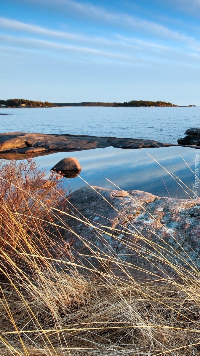 Edytor tapety: Kamieniste wybrzeże i trawy
