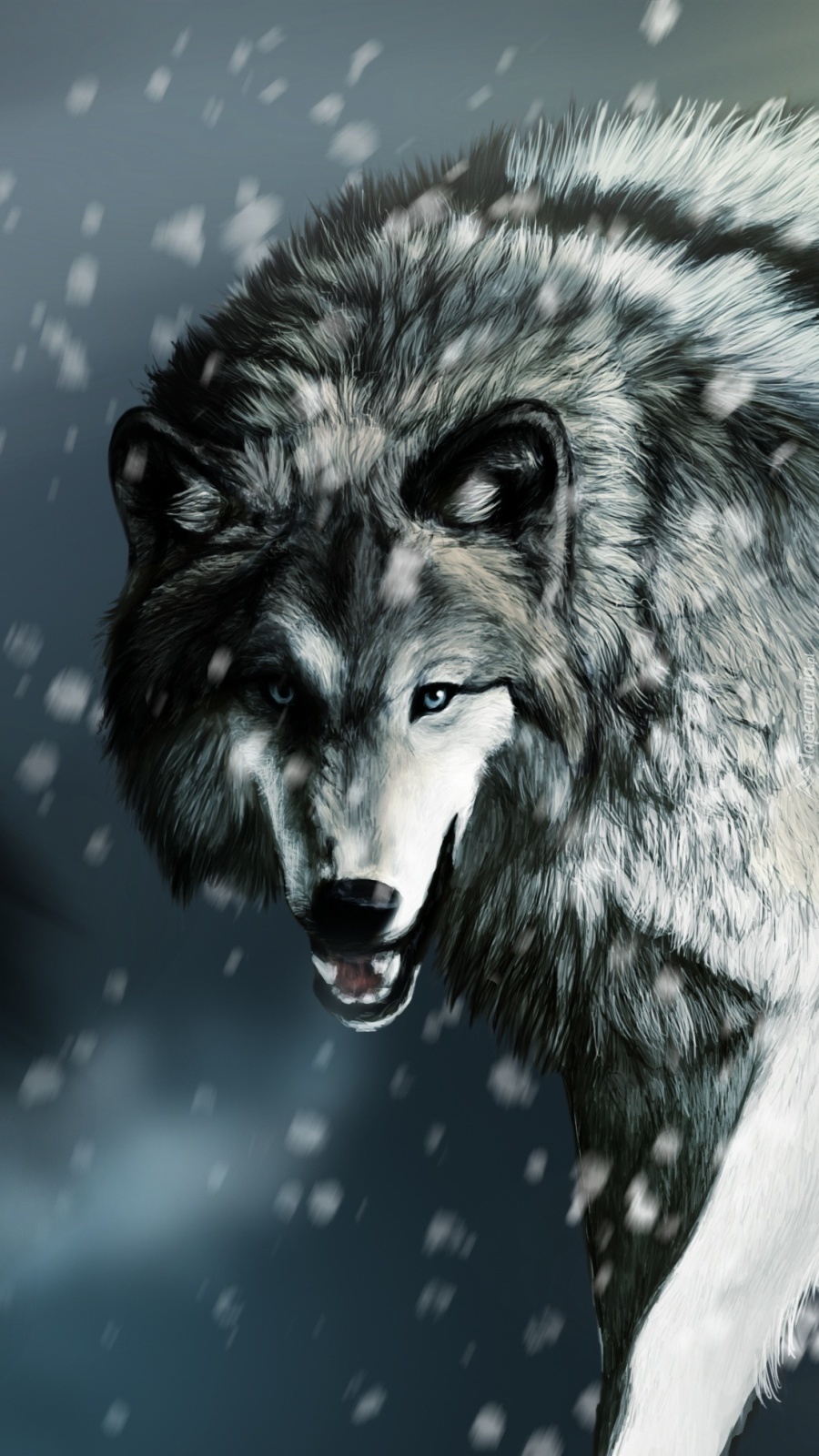 Edytor tapety: Wilk szczerzący kły