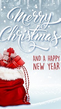 Edytor tapety: Życzenia świąteczne i noworoczne z prezentem w grafice 2D
