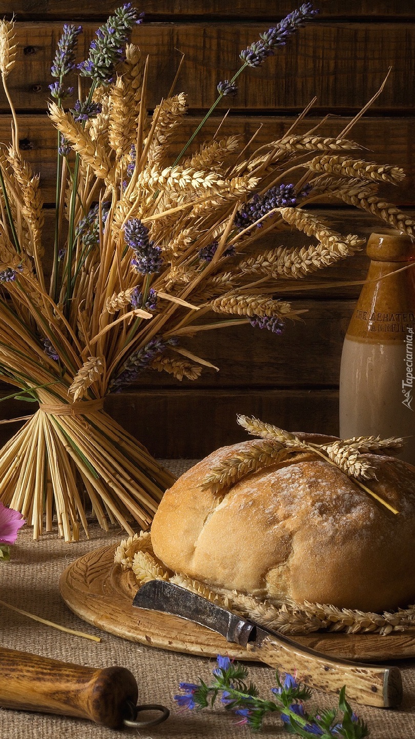 Edytor tapety: Zboże w bukiecie obok bochenka chleba