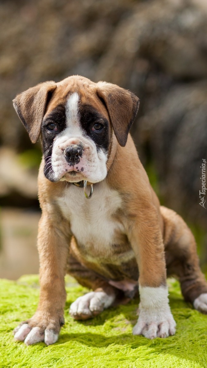 Edytor tapety: Słodki bokserek na trawie