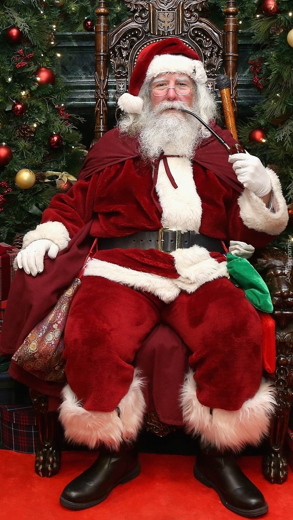 Edytor tapety: Zamyślony Mikołaj z fajką