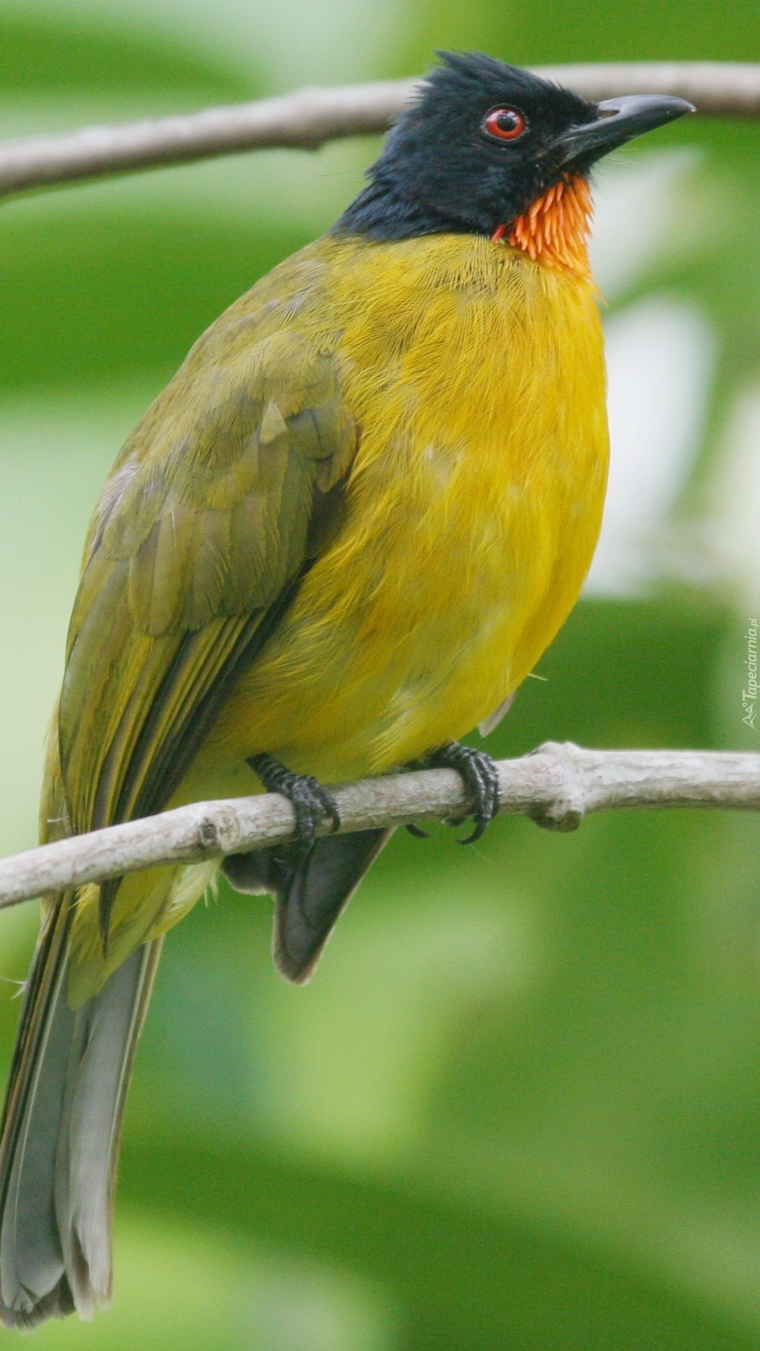 Edytor tapety: Bilbil czerwonobrody na gałęzi