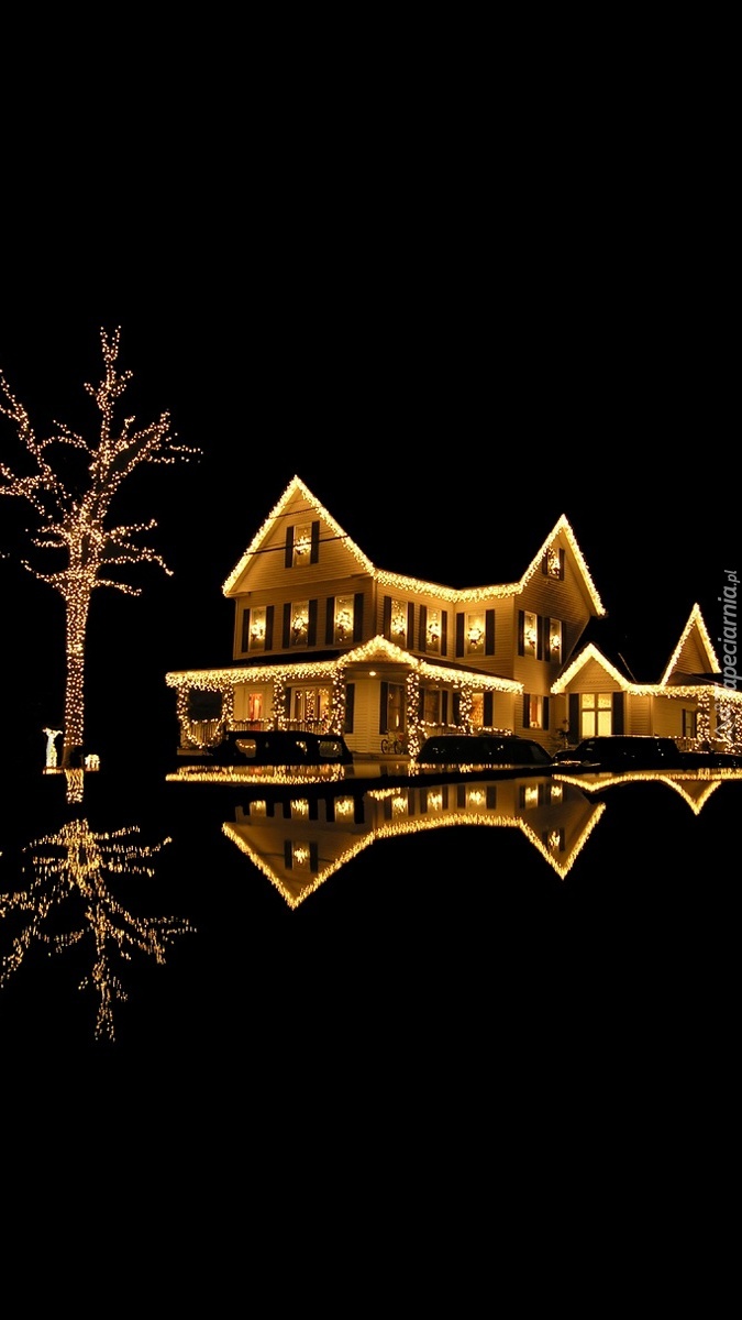 Edytor tapety: Oświetlony dom nocą