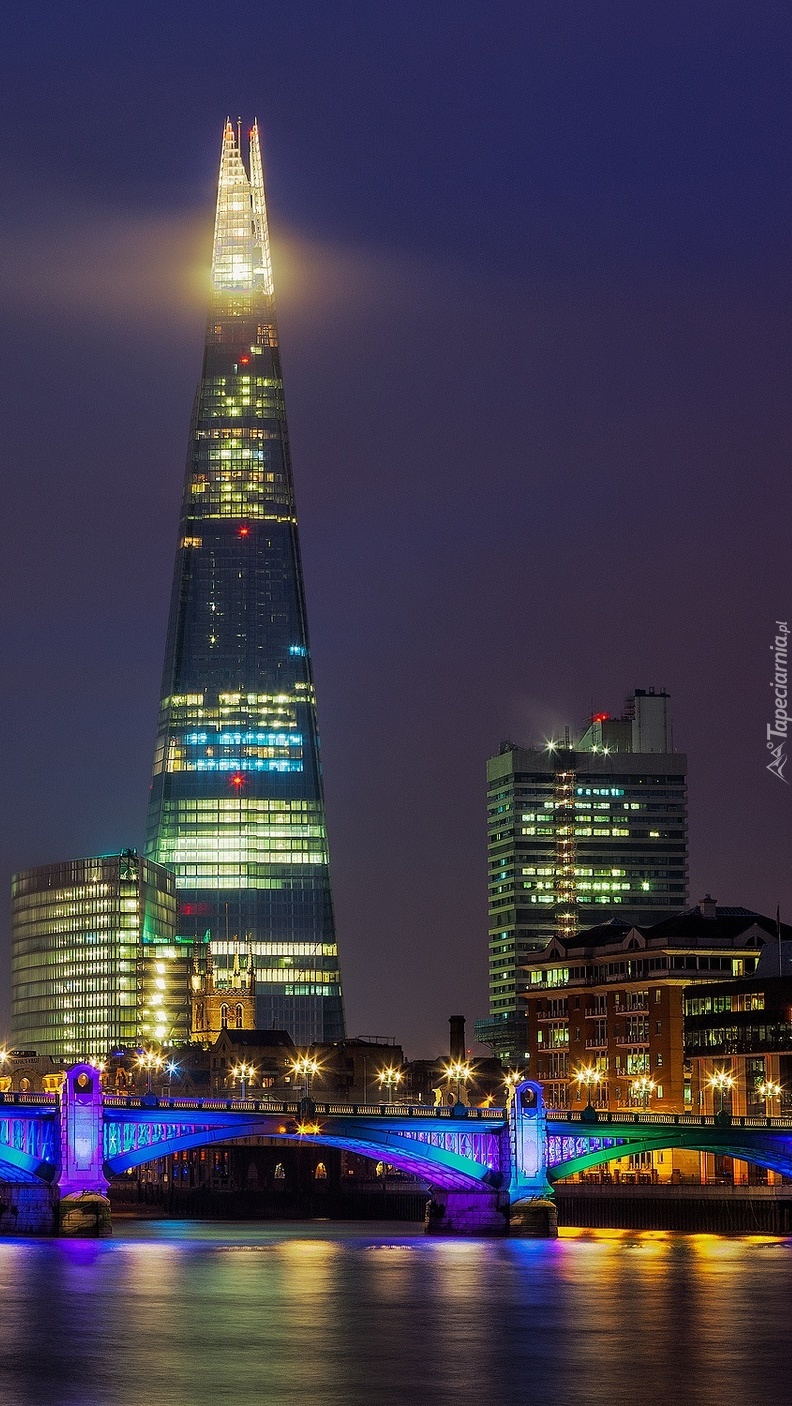 Edytor tapety: Wieżowce przy moście nad rzeką