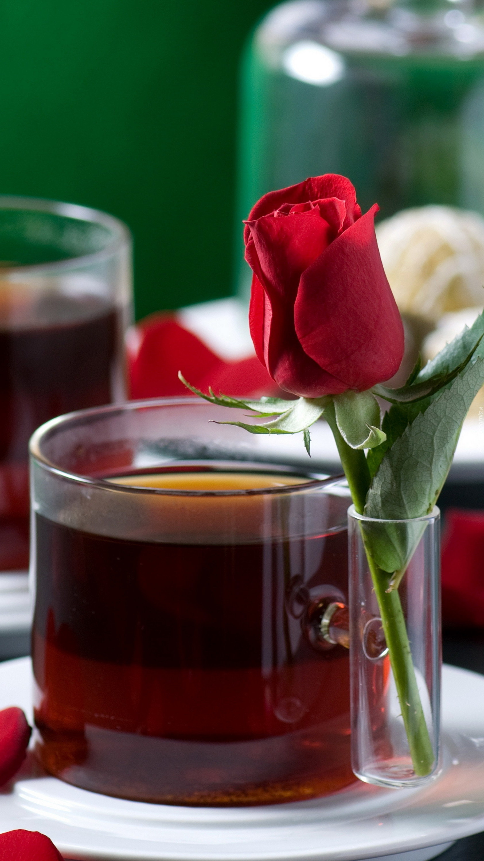 Edytor tapety: Szklanka herbaty z różą