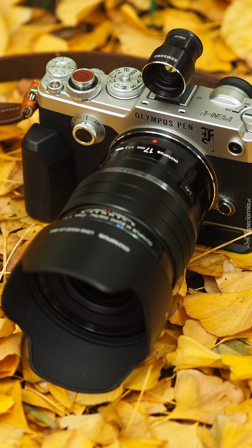 Edytor tapety: Aparat fotograficzny Olympus PEN na liściach