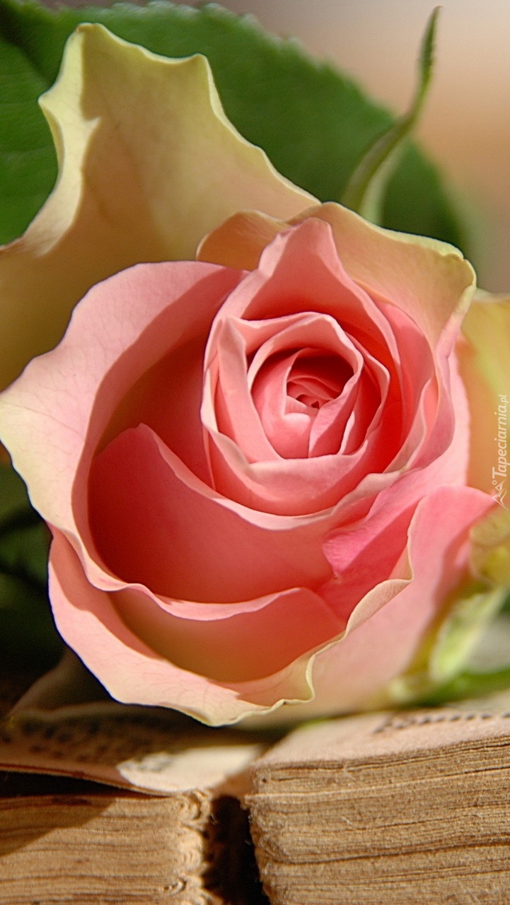 Edytor tapety: Różowa róża na otwartej książce