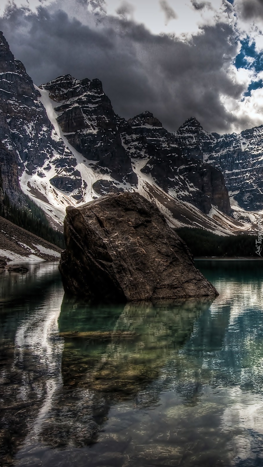 Edytor tapety: Ciemne chmury nad górskim jeziorem