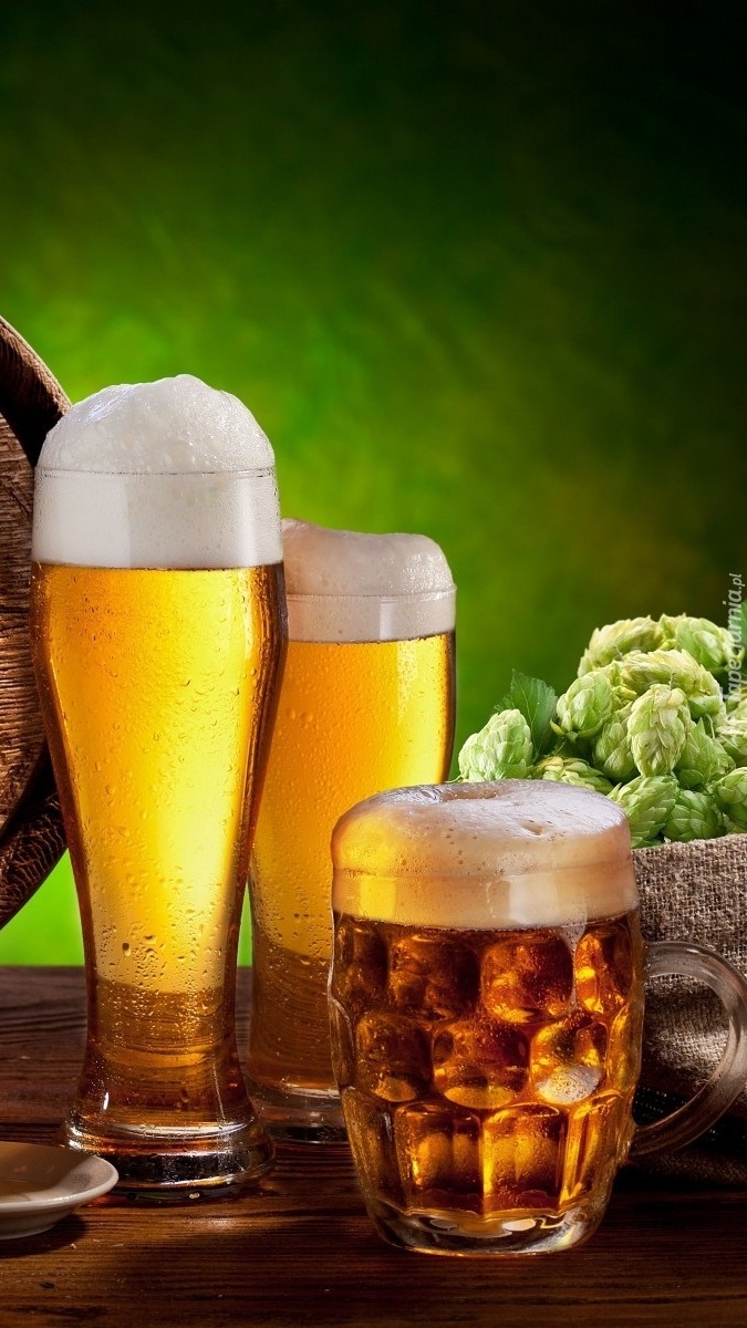 Edytor tapety: Kufle piwa i koszyk z chmielem
