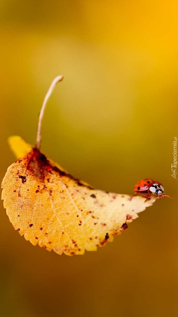 Edytor tapety: Biedronka na rdzawym liściu