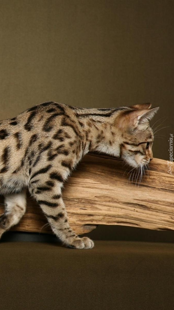 Edytor tapety: Kot bengalski przy kawałku drewna