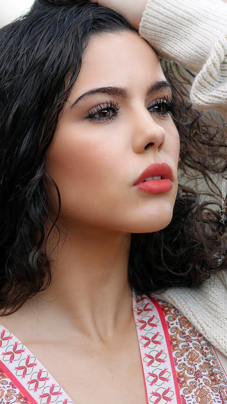Edytor tapety: Skupiona twarz brunetki