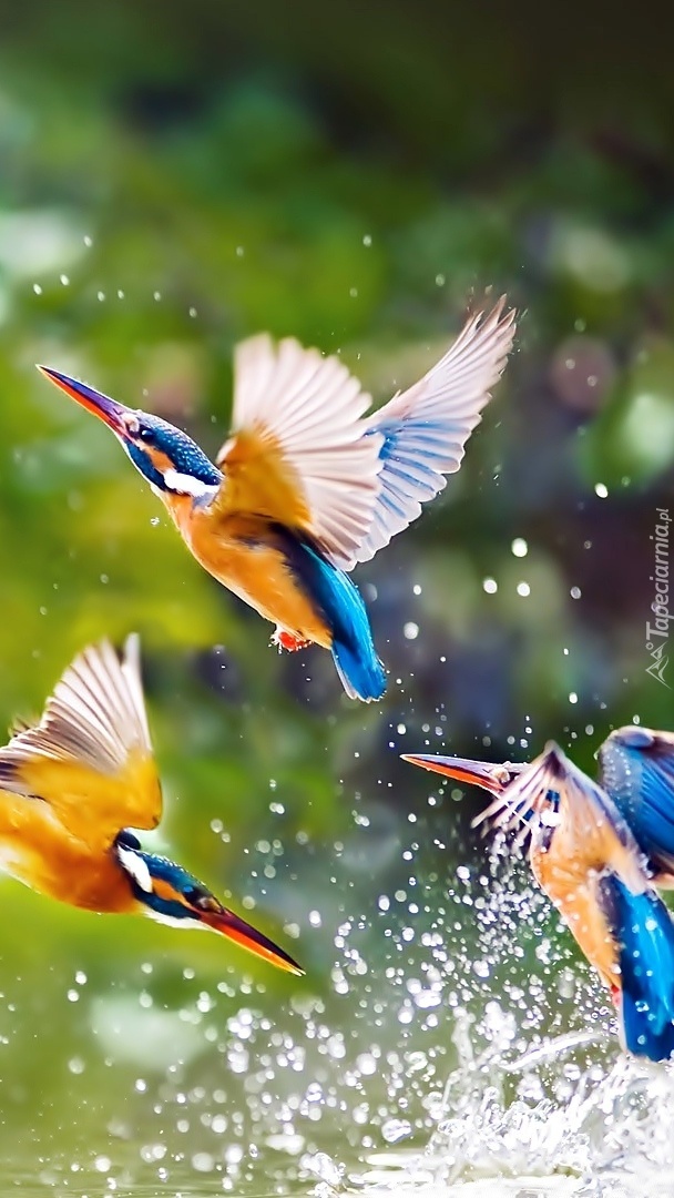 Edytor tapety: Kolorowe koliberki w kroplach wody