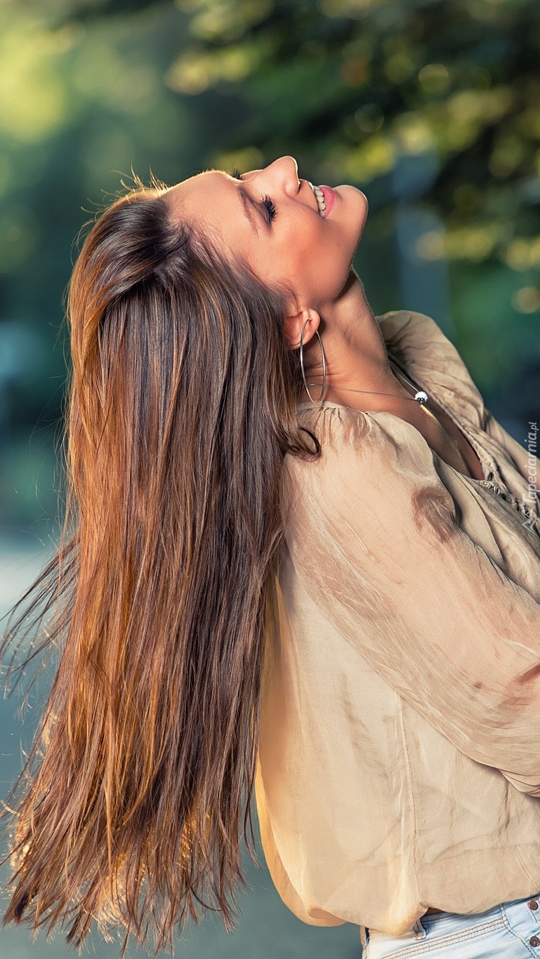 Edytor tapety: Uśmiechnięta długowłosa kobieta