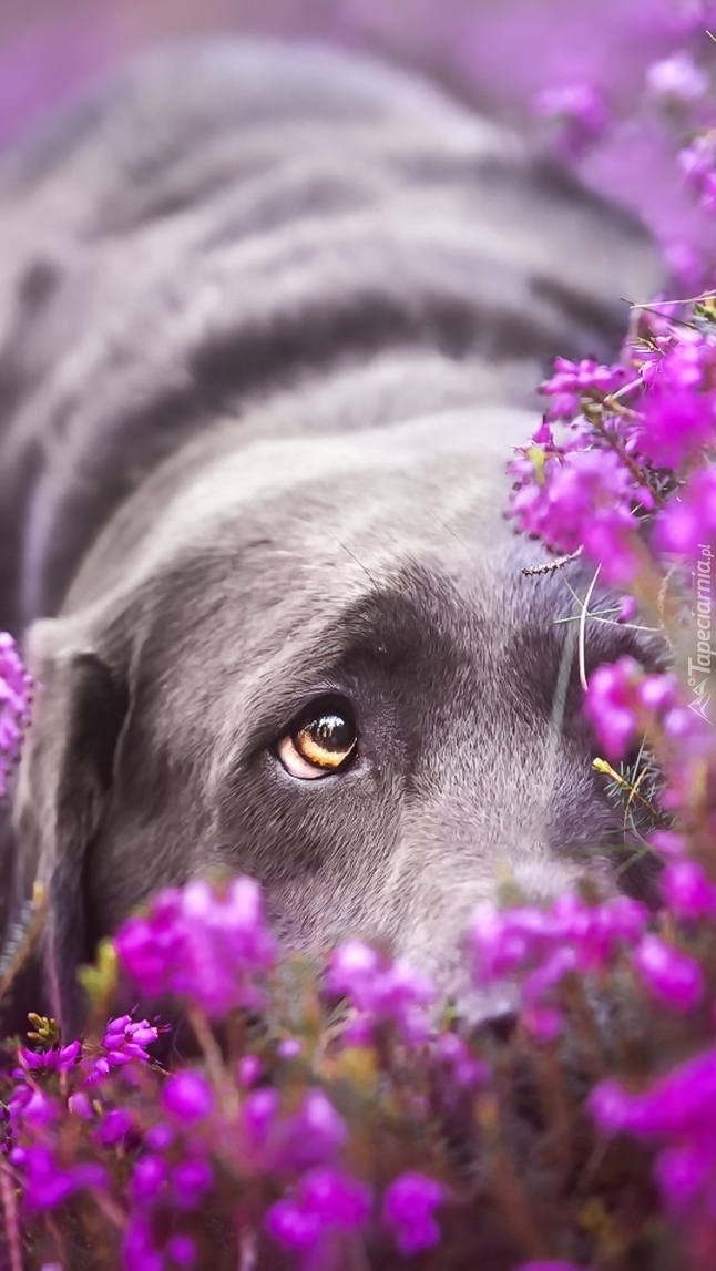 Edytor tapety: Labrador z mordką we wrzosie