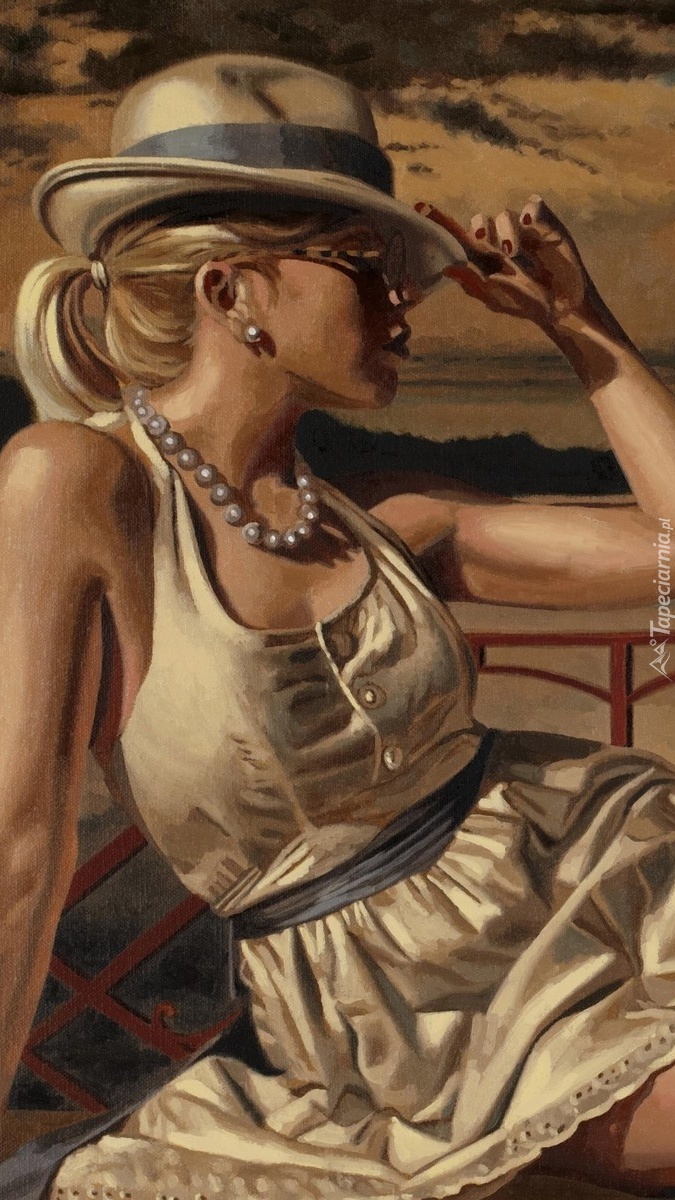 Edytor tapety: Kobieta w kapeluszu nad wodą