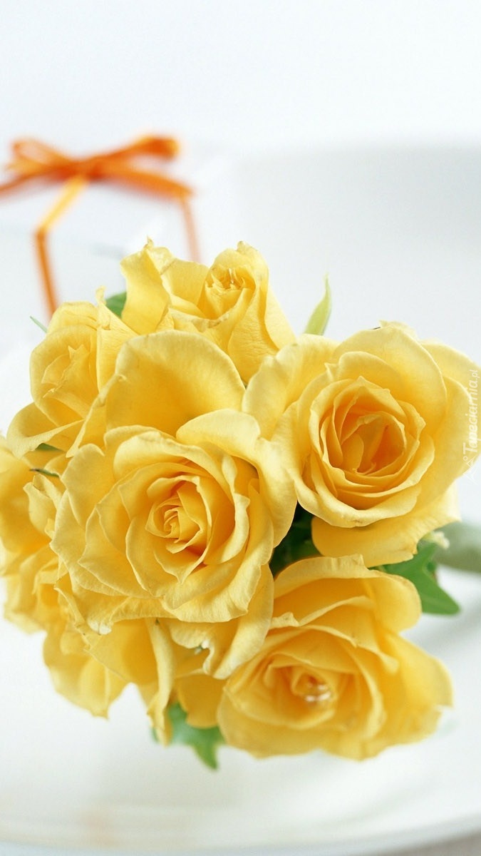 Edytor tapety: Bukiet żółtych róż z prezentem
