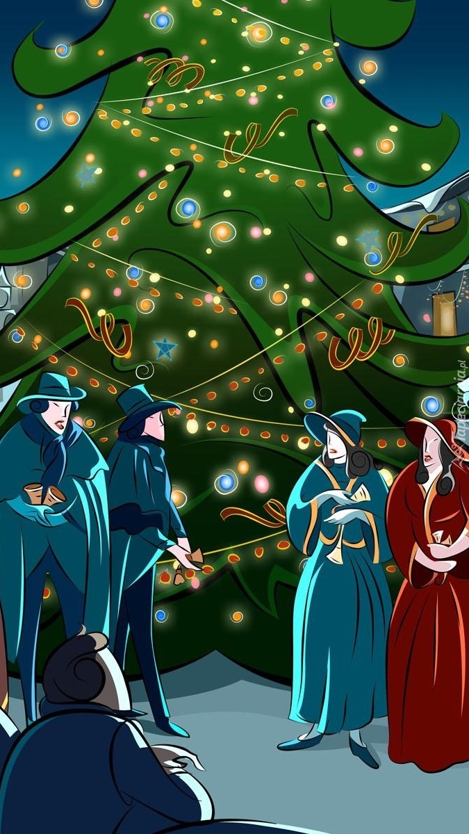 Edytor tapety: Kolędnicy przy choince