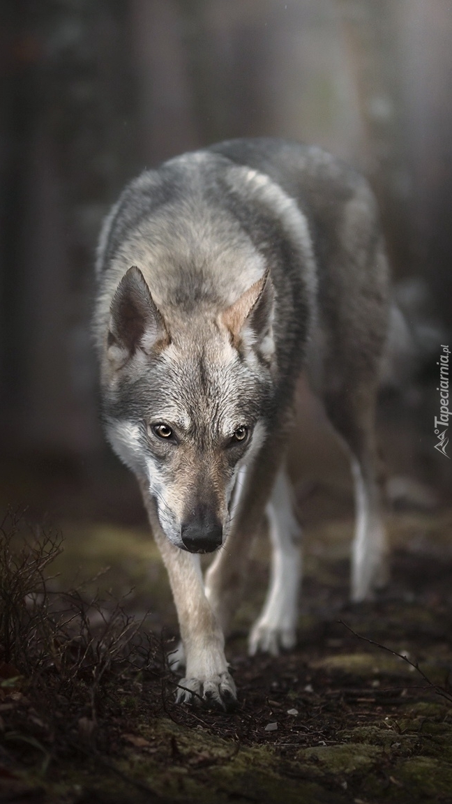 Edytor tapety: Wilczak czechosłowacki w lesie