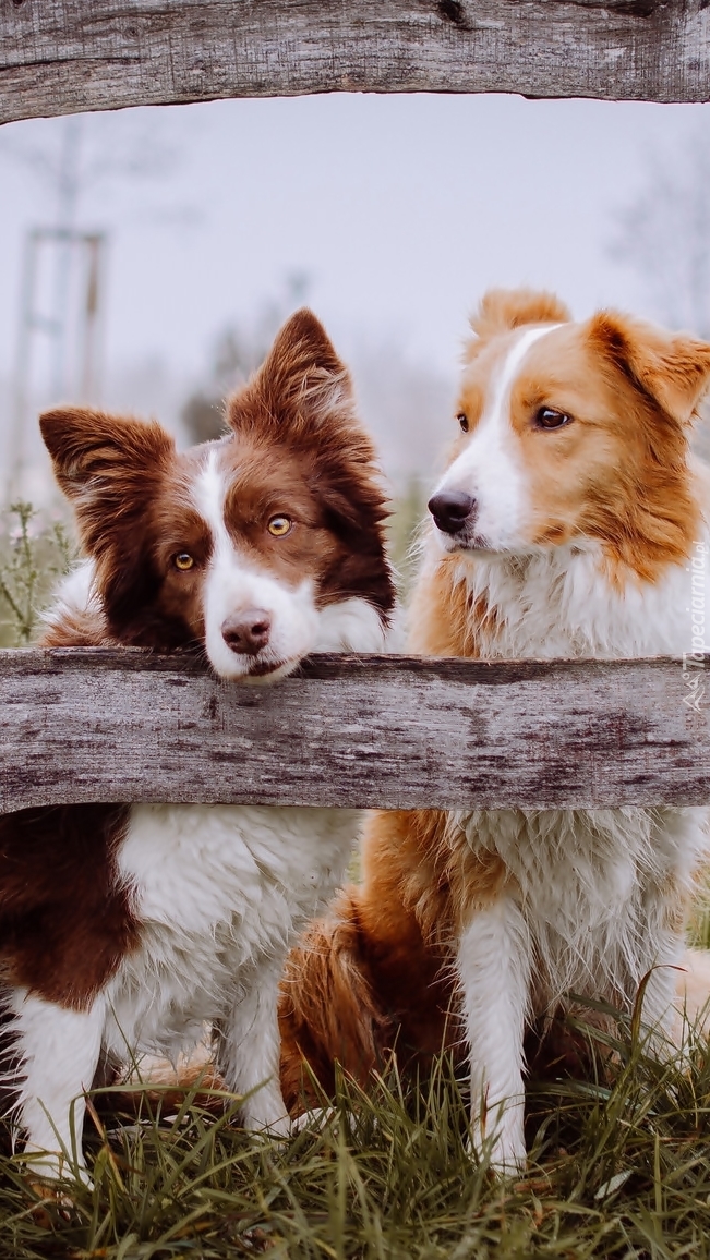 Edytor tapety: Dwa border collie na ogrodzonej łące