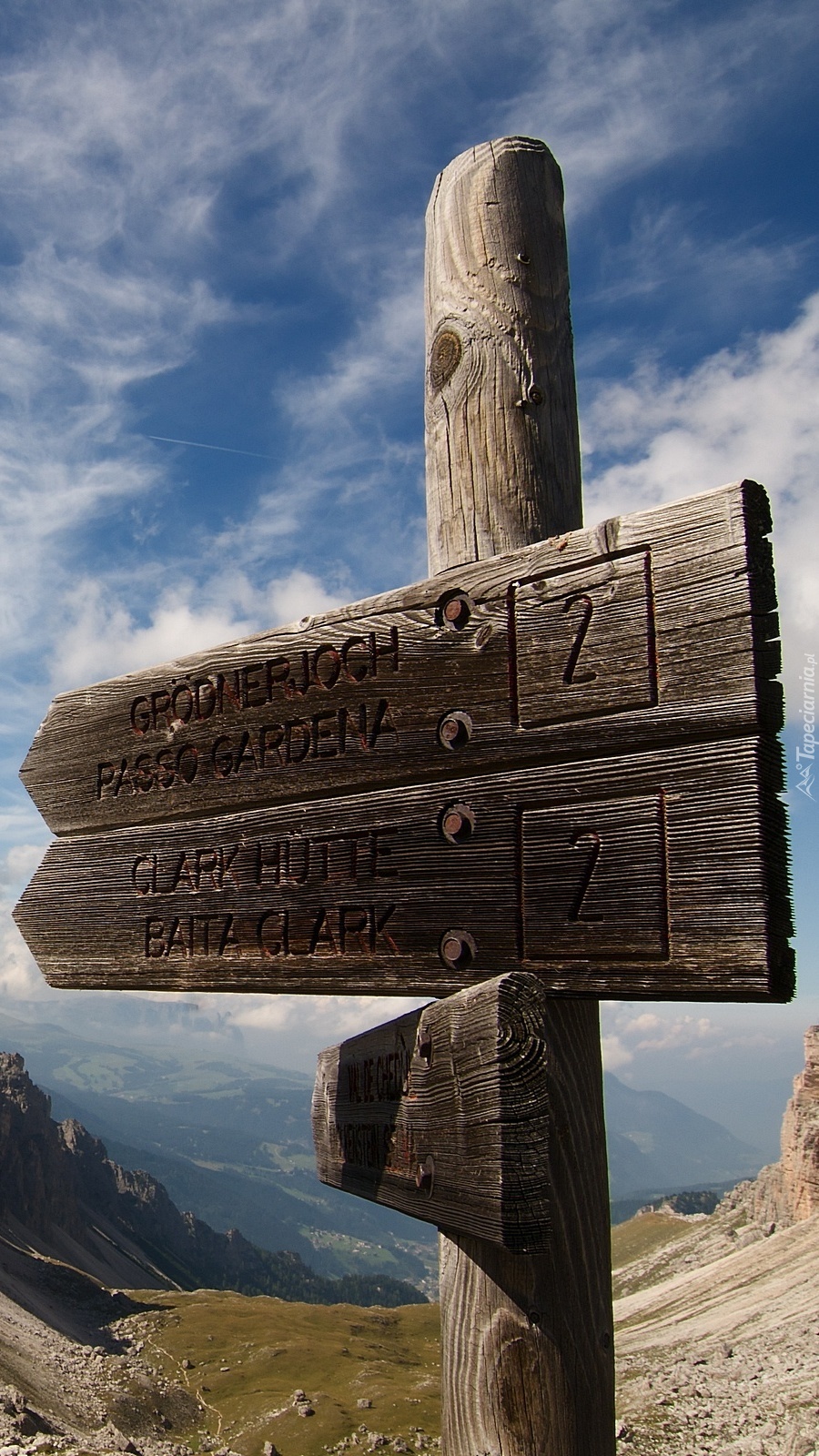 Edytor tapety: Drogowskaz w górach