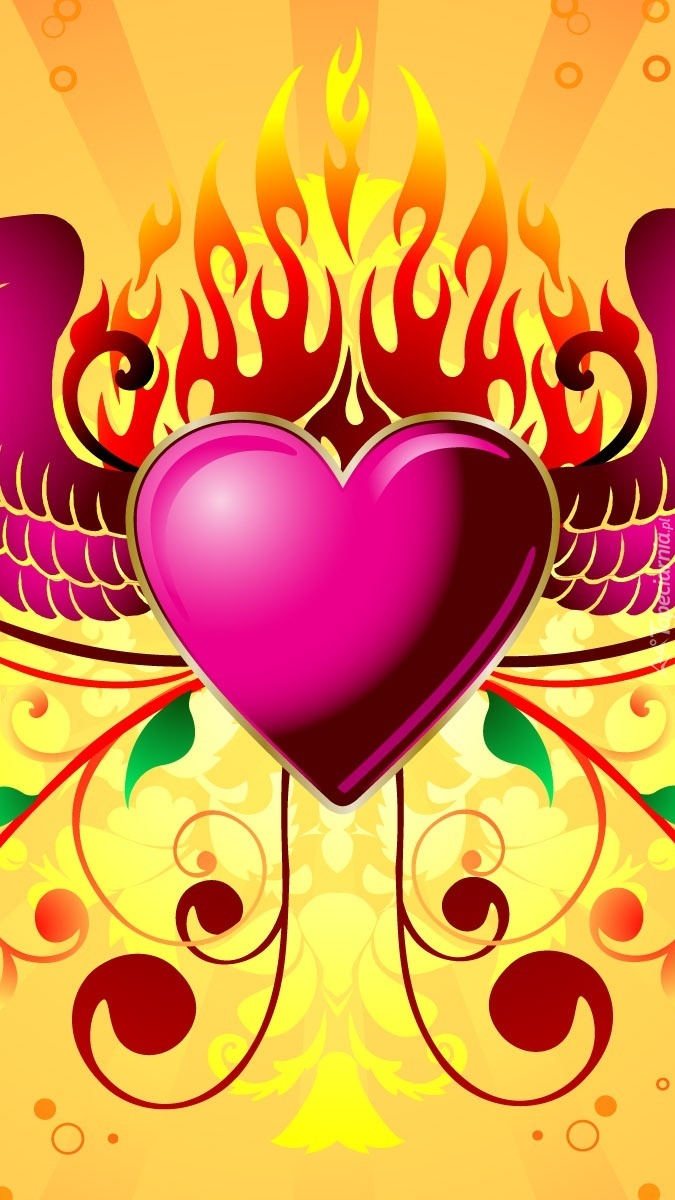Edytor tapety: Ogniste serce ze skrzydełkami