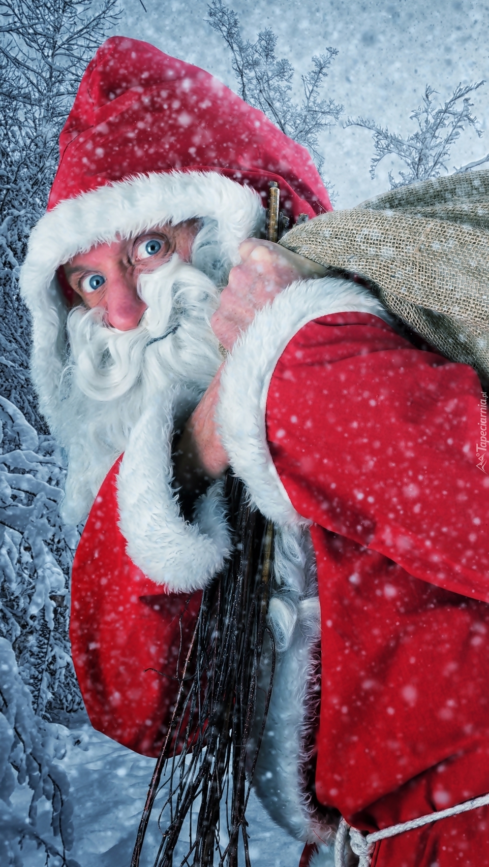 Edytor tapety: Mikołaj z rózgami i workiem