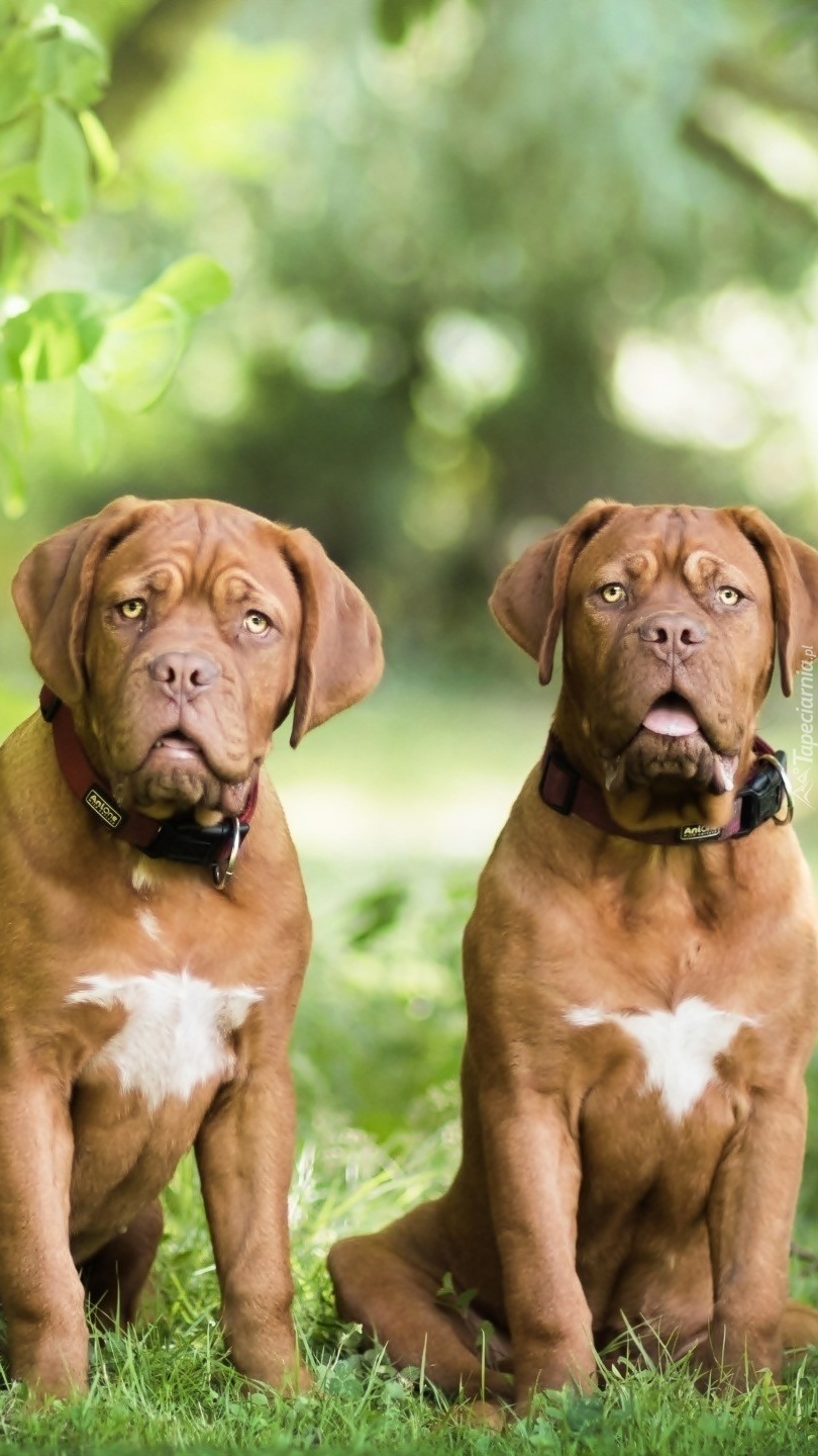 Edytor tapety: Dwa dogi de Bordeaux w lesie