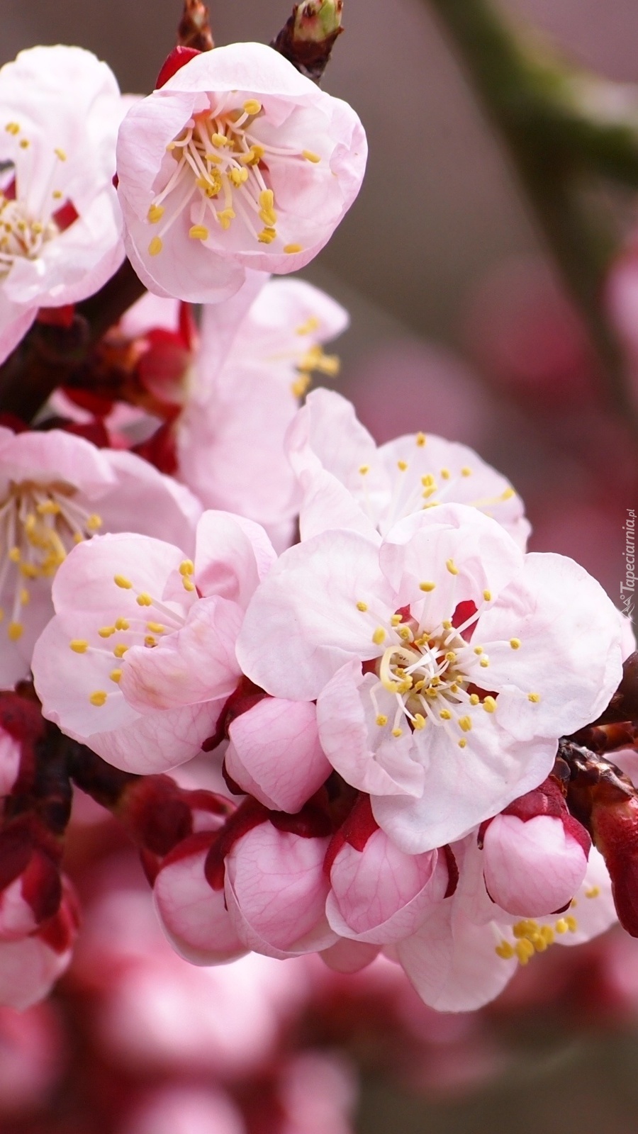 Edytor tapety: Różowe kwiatki z żółtymi pręcikami