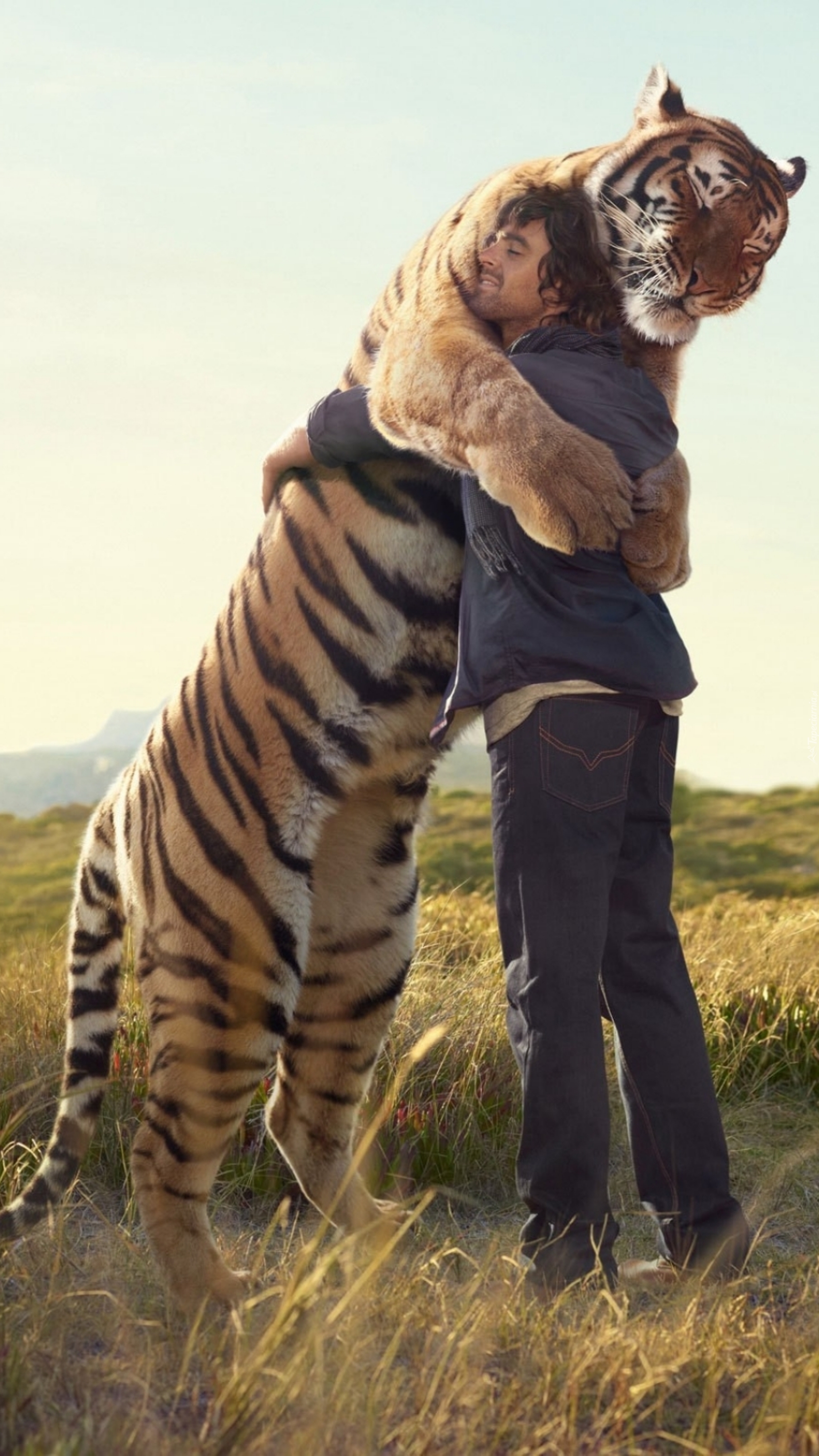 Edytor tapety: Przywitanie mężczyzny z tygrysem