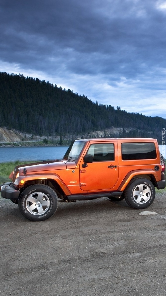 Edytor tapety: Jeep Wrangler nad rzeką w górach