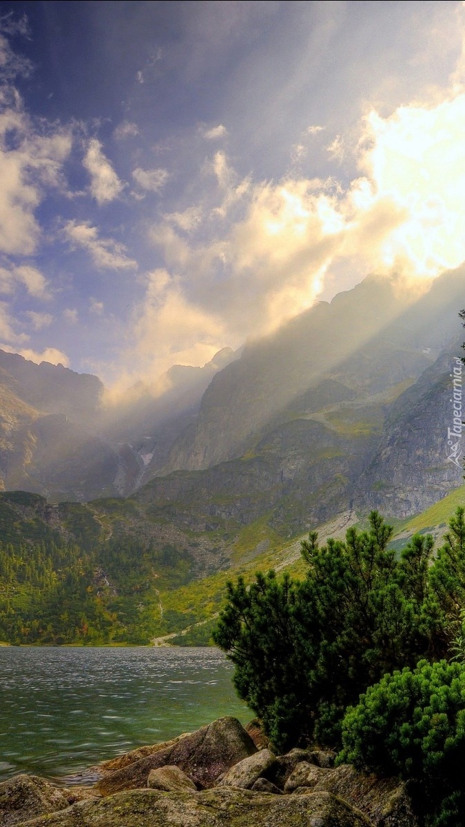Edytor tapety: Chmury nad górską rzeką