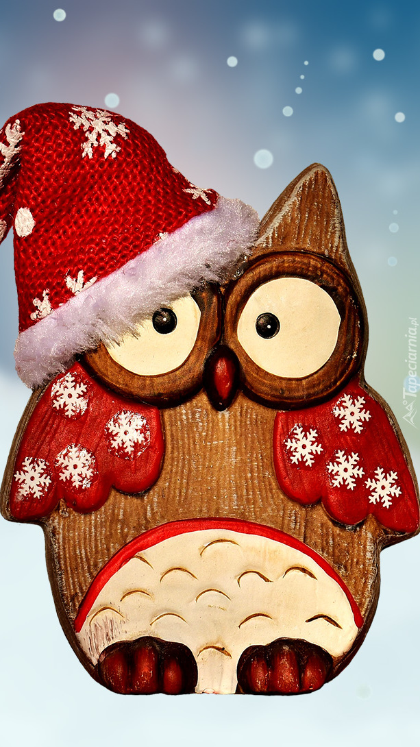 Edytor tapety: Sowa w czapce Mikołaja