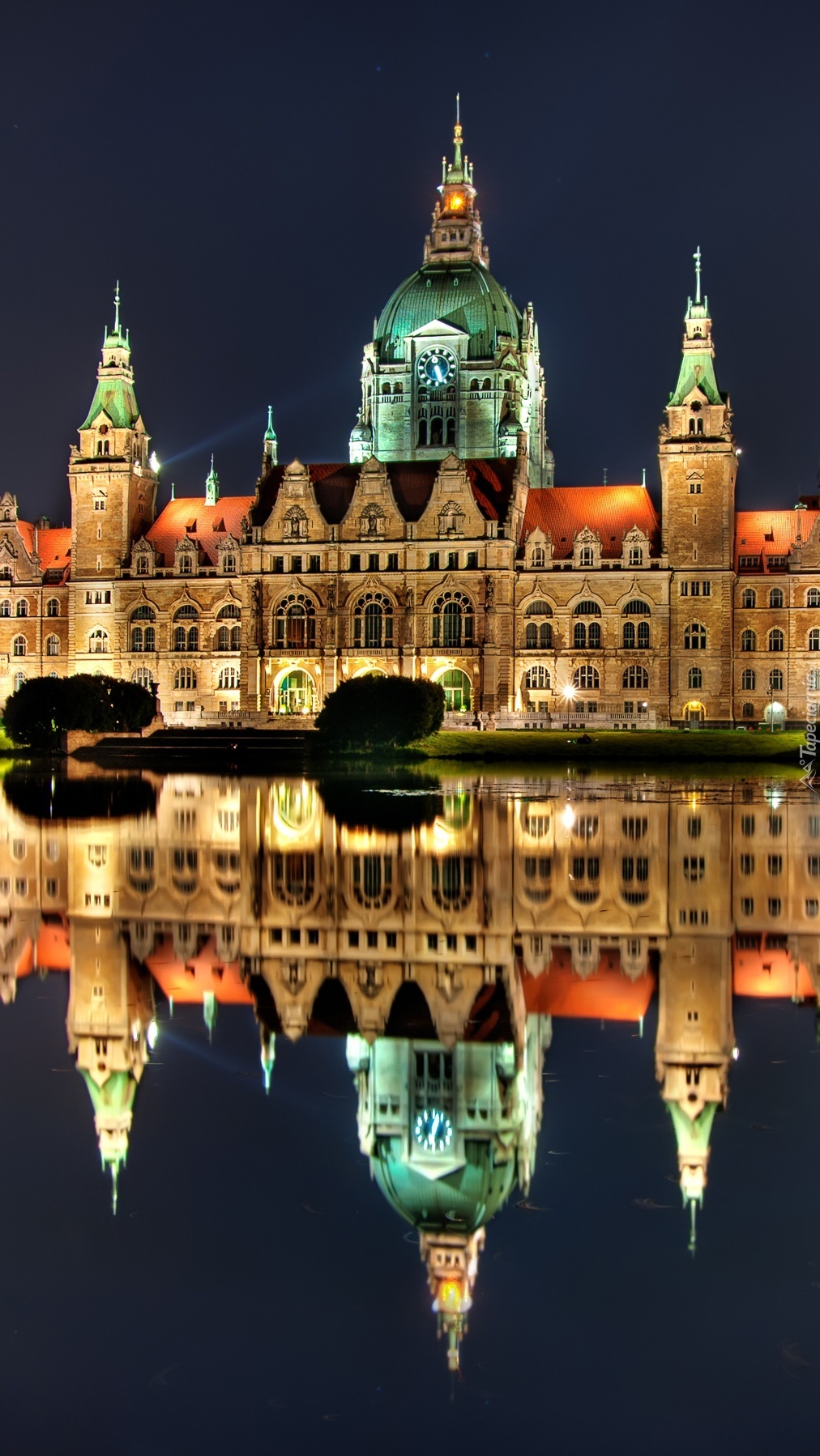 Edytor tapety: Ratusz w Hanowerze nad jeziorem