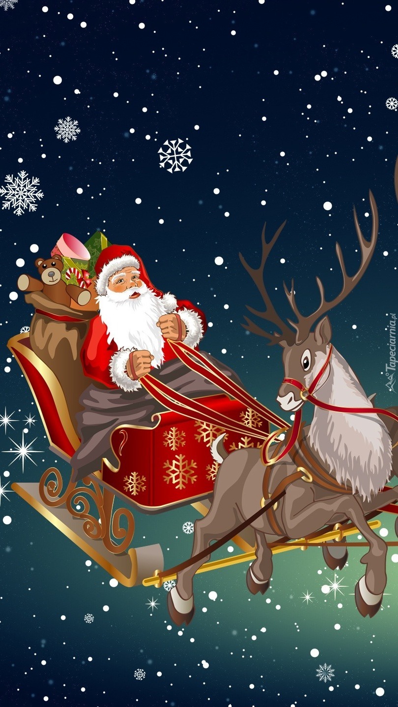 Edytor tapety: Renifer ciągnący sanie z Mikołajem