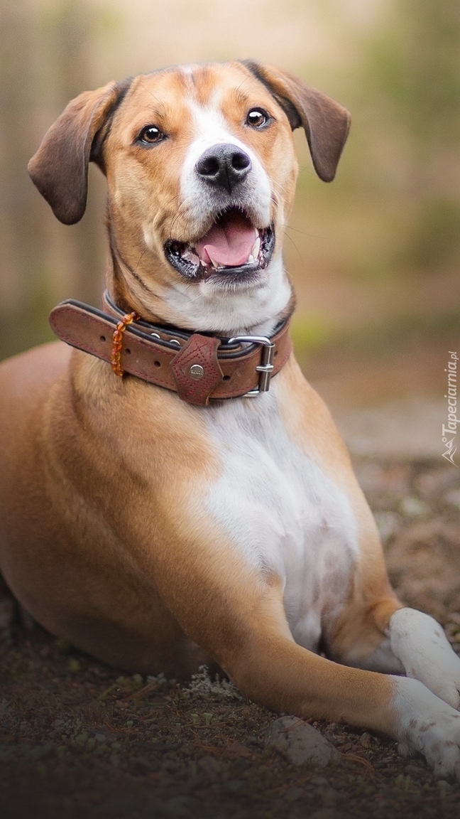 Edytor tapety: Leżący pies w obroży