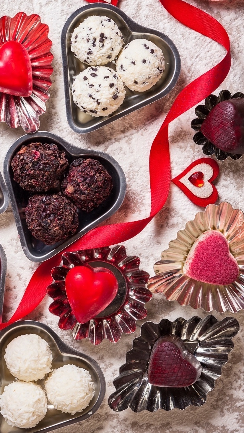 Edytor tapety: Walentynkowe słodkości w serduszkach.