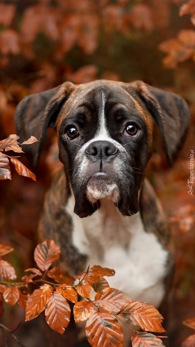 Edytor tapety: Młody bokser pośród liści