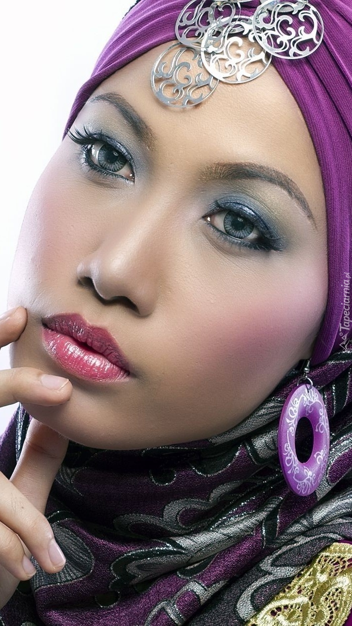 Edytor tapety: Kobieta w makijażu, biżuterii i chuście