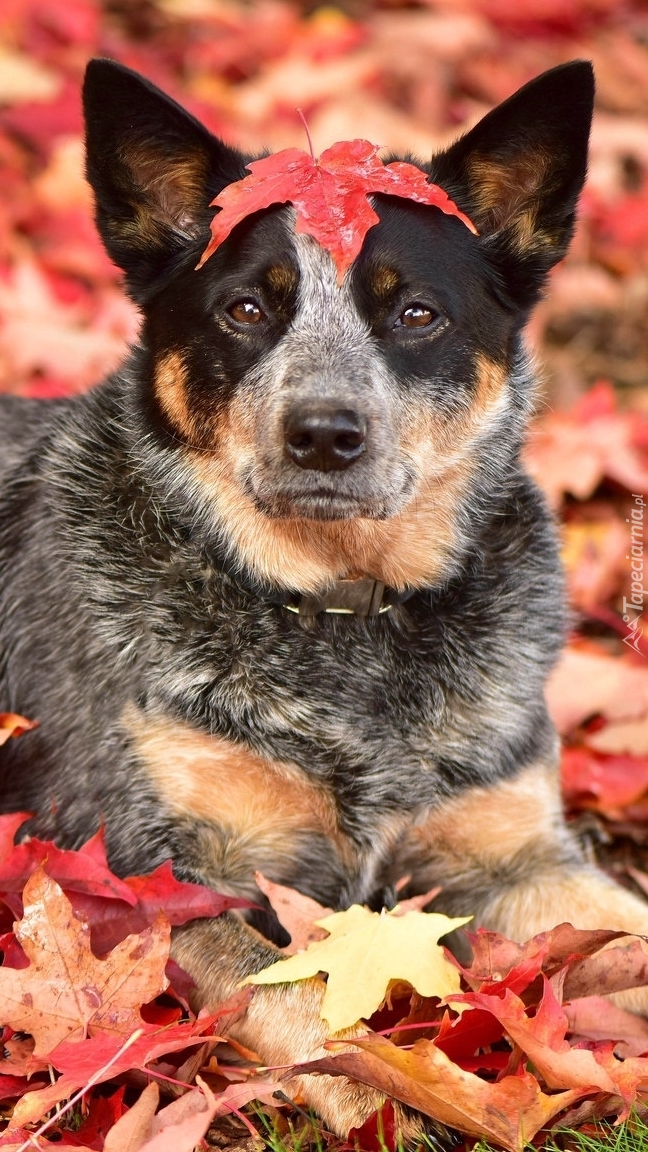 Edytor tapety: Australian cattle dog w liściach